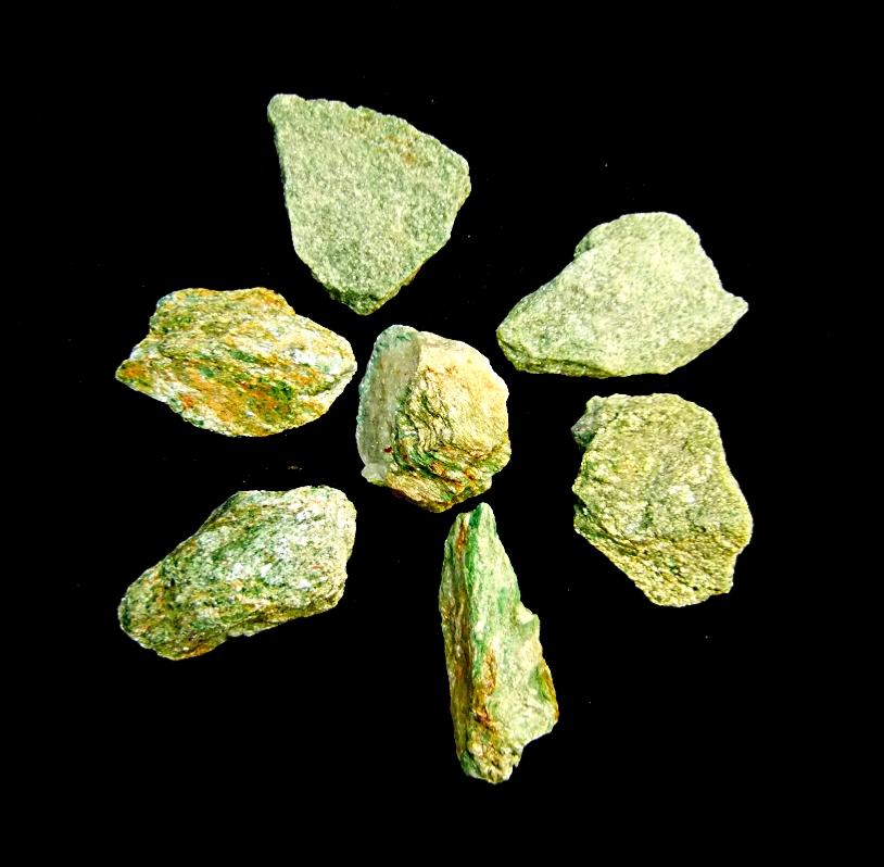 GREEN FUCHSITE RAW CRYSTAL SPECIMENS.ORIGINATES FROM BRAZIL.SIZE = 2CM-4CM ACROSS.WEIGHT = 40g-55g.