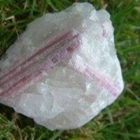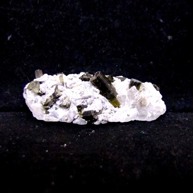 green tourmaline crystals in feldspar matrix.&nbsp,