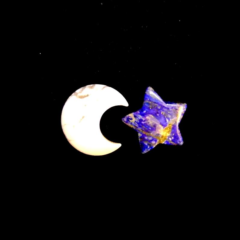 lapis lazuli star &amp, white howlite moon carvings.&nbsp,