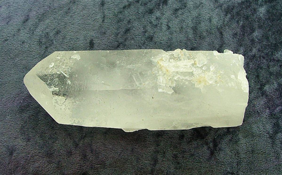 Laser quartz point specimen with barnacle formations.size = 140mm in length x 50mm x 45mm aprox.WEIGHT = 475g.