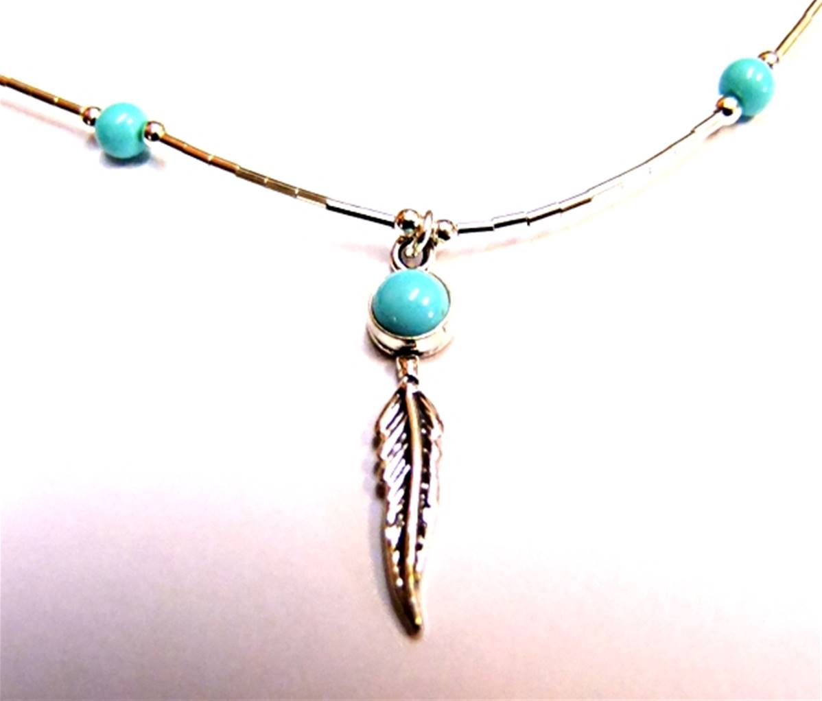 Pendant features silver feather.necklace length = 18″weight = 5g.WITH Trigger style catch.