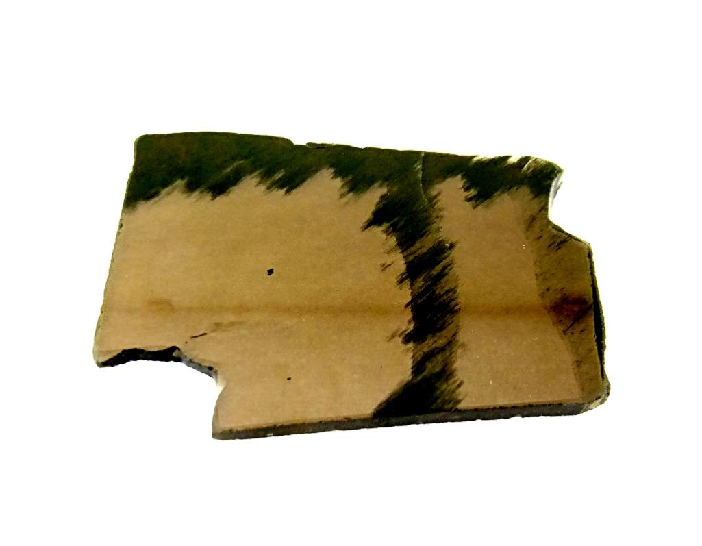 natural smokey obsidian glass polished slice specimen.