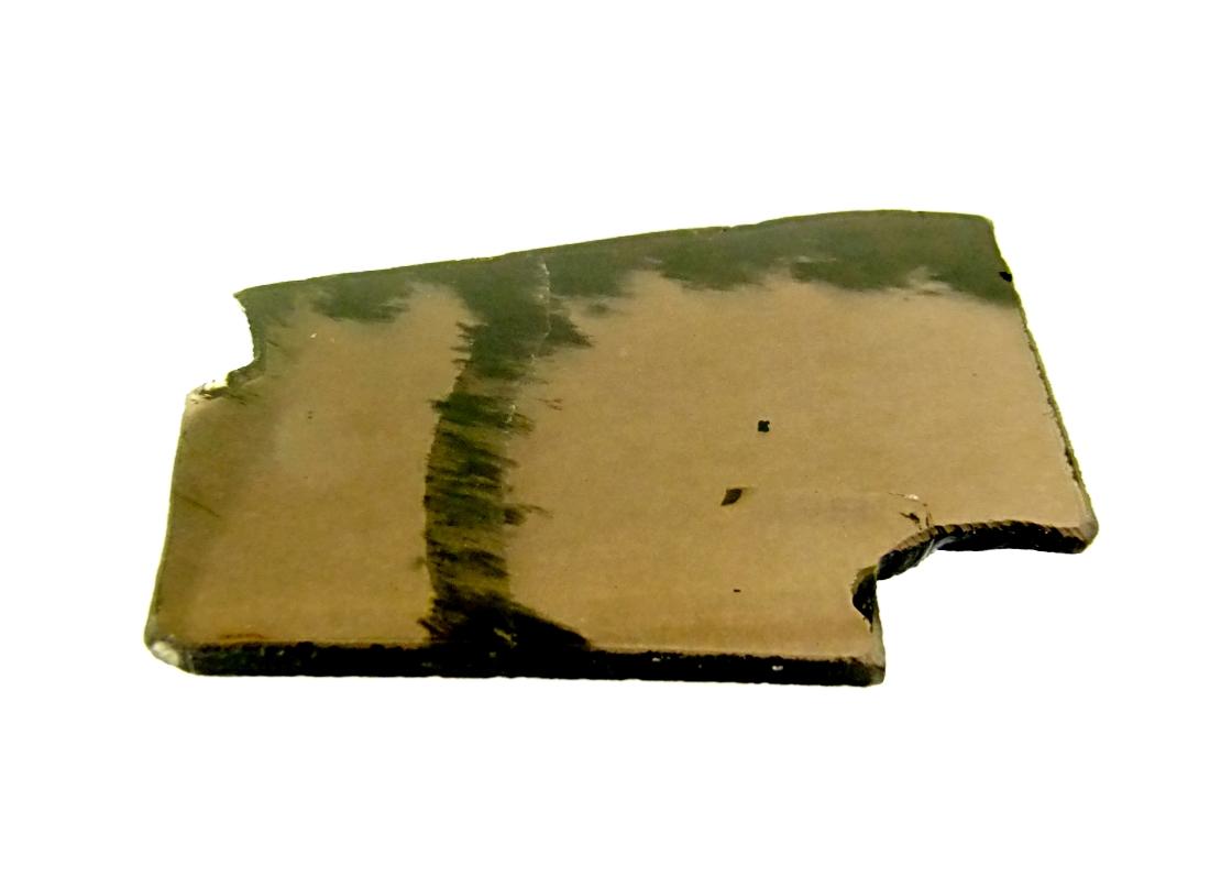 Natural smokey obsidian glass polished slice specimen.