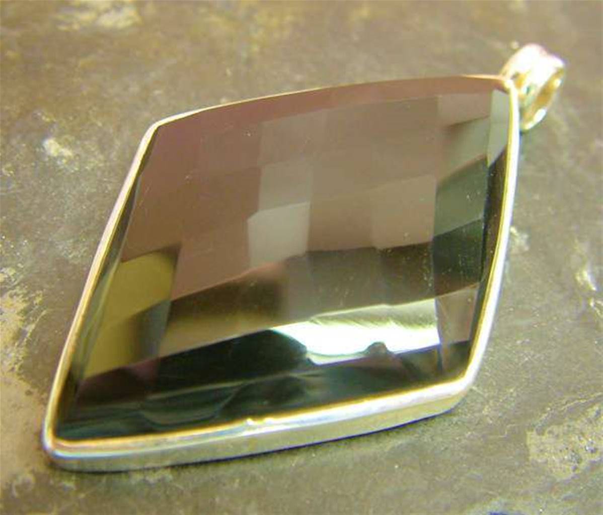 One off designer pendant featuring a faceted diamond shape cabochon in black onyx.SIZE-62mm in length including it’s bail x 36mm wide.weight-24g.CABOCHON Size-52 x 35mm aprox.