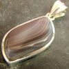 One off designer pendant featuring a banded agate cabochon.size-44mm in length including it’s bail x 18mm wide.weight-11g.CABOCHON Size-29 x 17mm aprox.