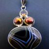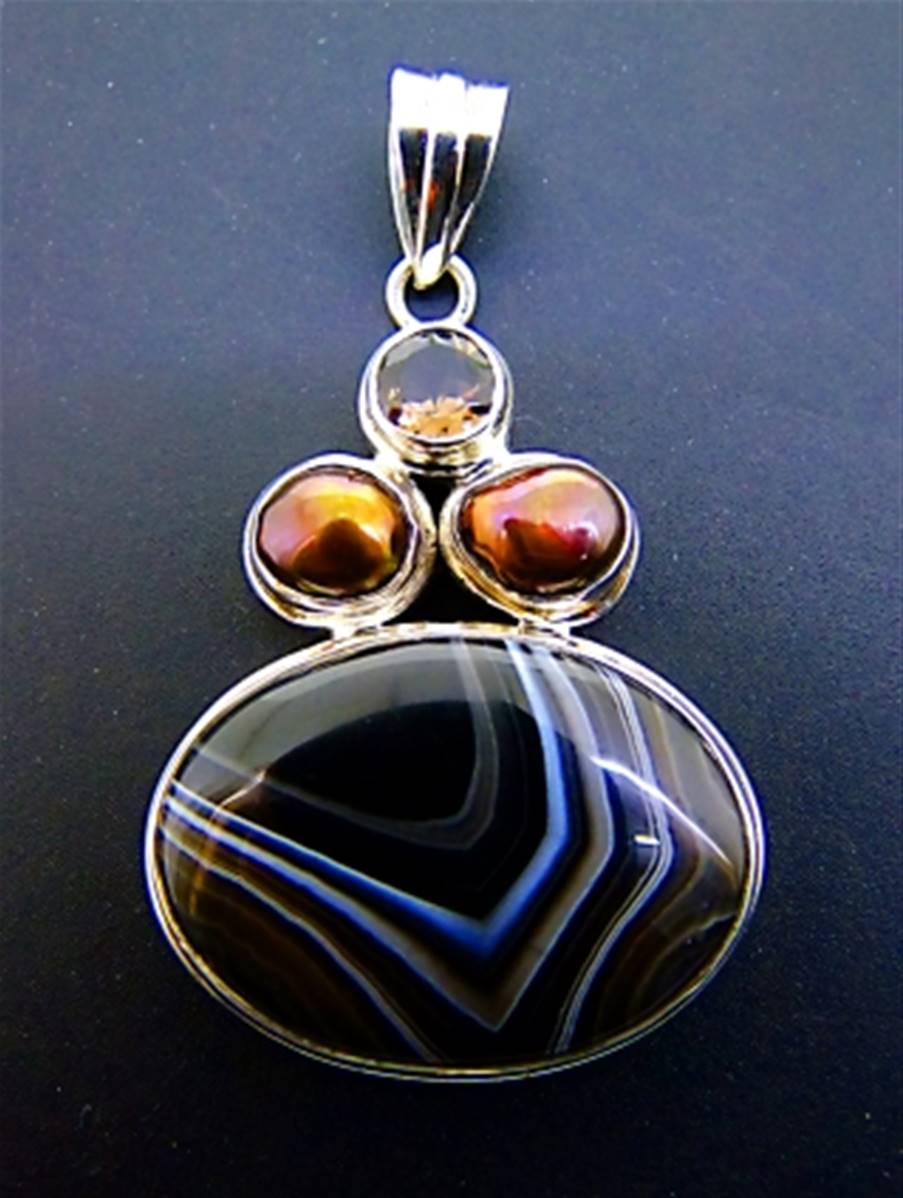 This pendant features a single large oval dome polished cabochon in sardonyx together with two fresh water pearls & a single facetted round cabochon in smokey quartz.size of this pendant = 60mm in length x 34mm wide aprox.WEIGHT = 25g.SIZE Of cabochons =sardonyx = 32mm x 23mm.fresh water pearls = 9mm across.smokey quartz = 7mm in diameter.