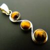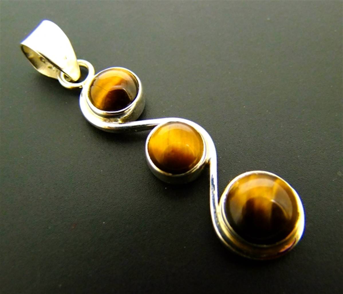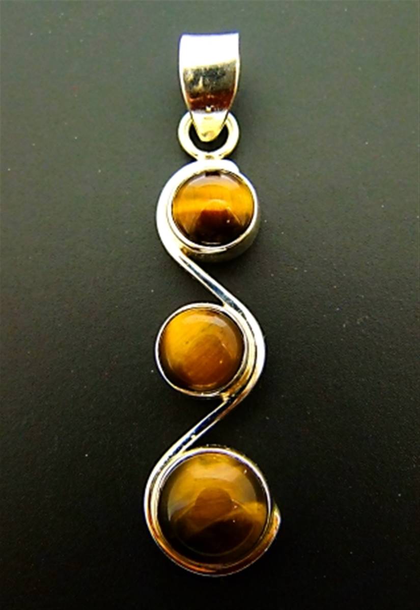 This pendant features a large dome polished round cabochons in tigerseye.size of this pendant = 62mm in length x 15mm wide aprox.WEIGHT = 9g.SIZE Of cabochons = 9mm & 12mm in diameter.