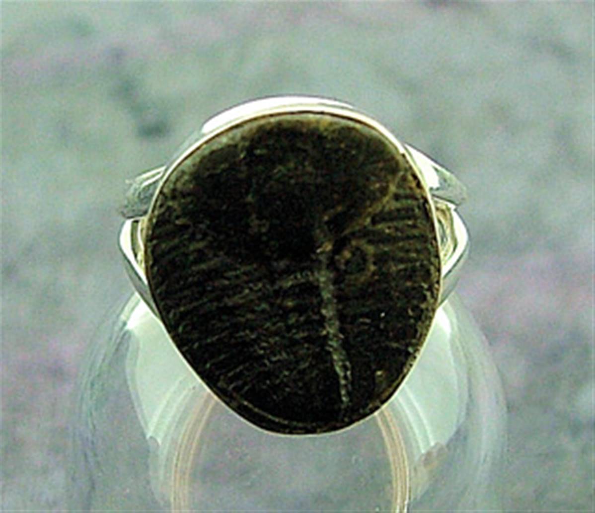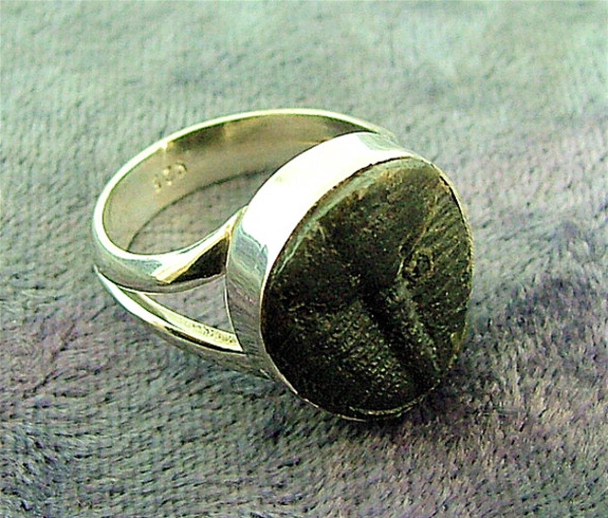 This ring in 925 silver has been set with a trilobite fossil.ring size ‘l’size of trilobite = 14mm x 16mm.weight = 5g.