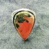 Features a teardrop shape dome polished cabochon in rhodochrosite with pyrite.ring size = ssize of cabochon = 28mm x 17mm.weight = 10g.