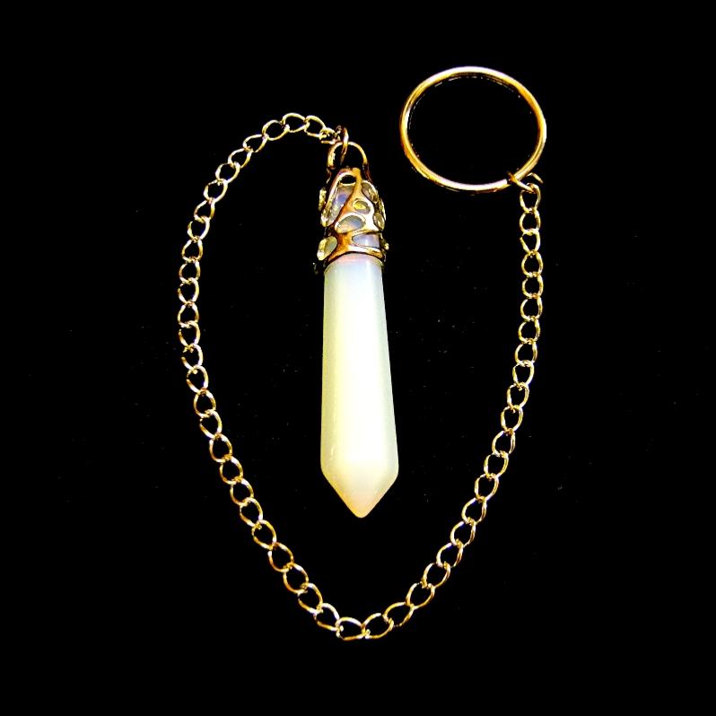 OPALITE DOWSING/ HEALING PENDULUM FEATURING FILIGRE DETAIL SILVER PLATED CAPPING AND CHAIN.