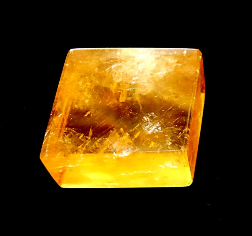 optical golden calcite polished rhombiodal crystal specimen. ,