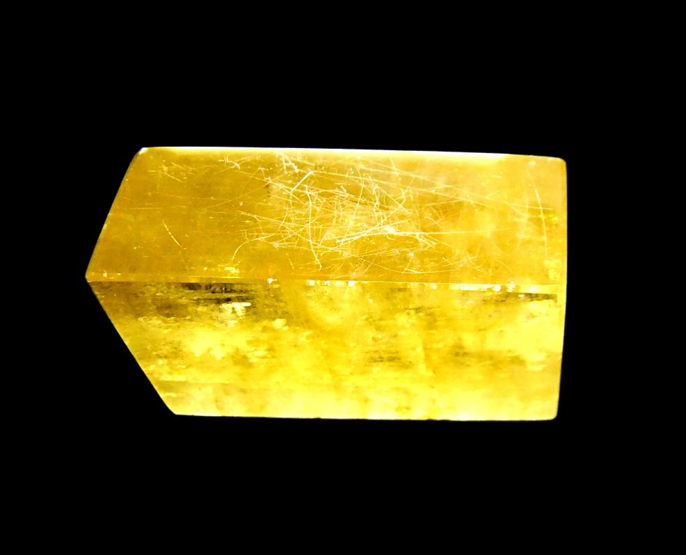 optical golden calcite polished rhombiodal crystal specimen. ,