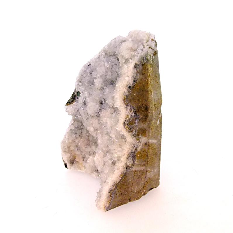 Pale amethyst druze specimen free standing with flat cut base.