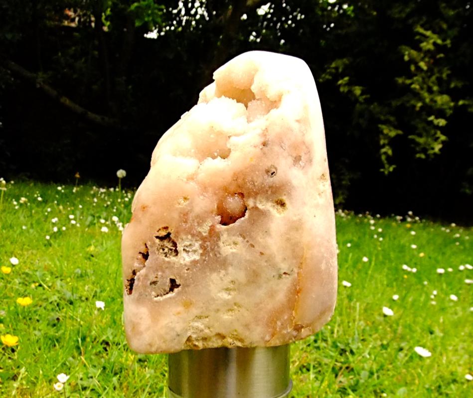pink amethyst polished geode specimen.