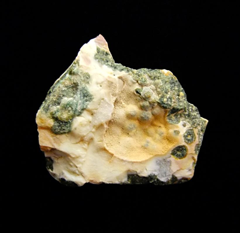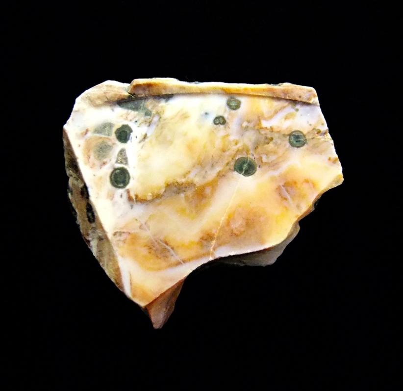 polished orbicular jasper slice specimen, one cut &, polished face.