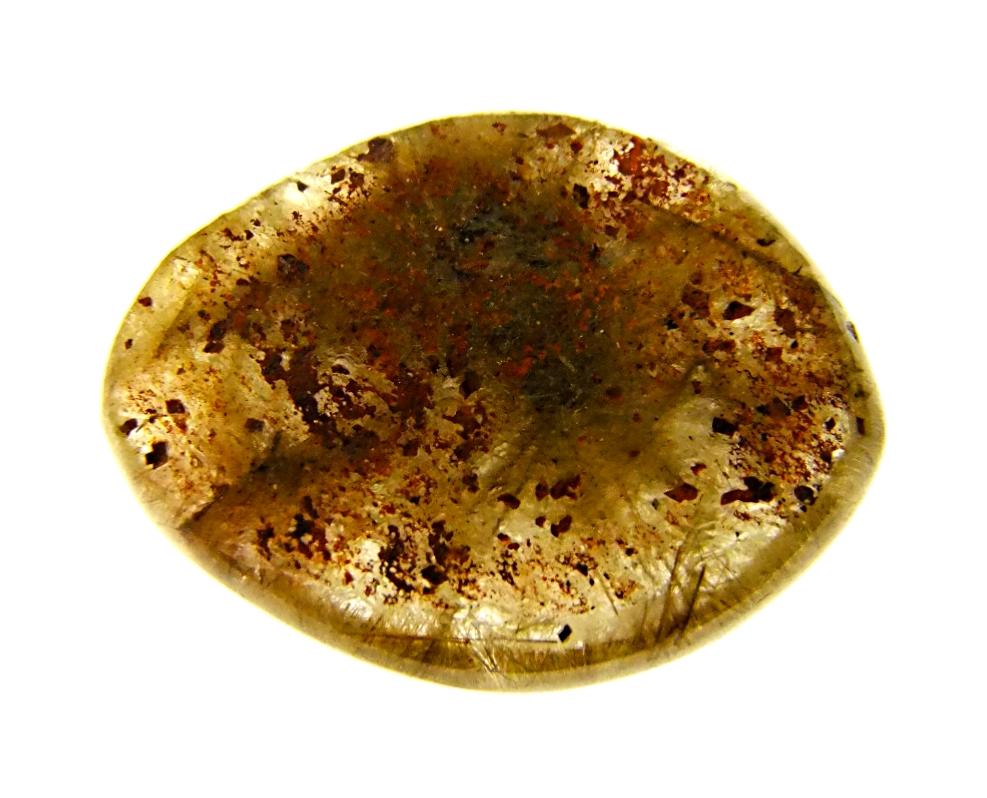 quartz dome polished pebble specimen with golden rutile inclusions.