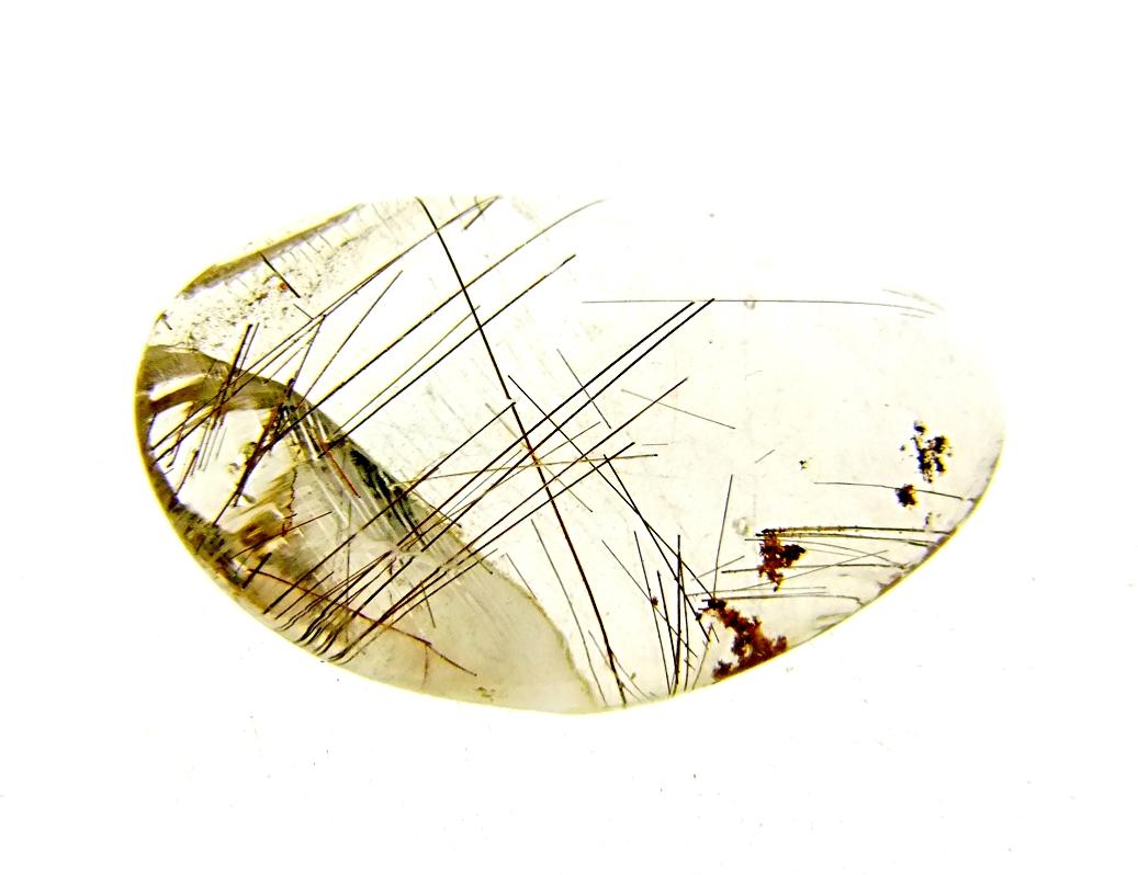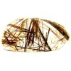 quartz dome polished pebble specimen featuring golden rutile inclusions.