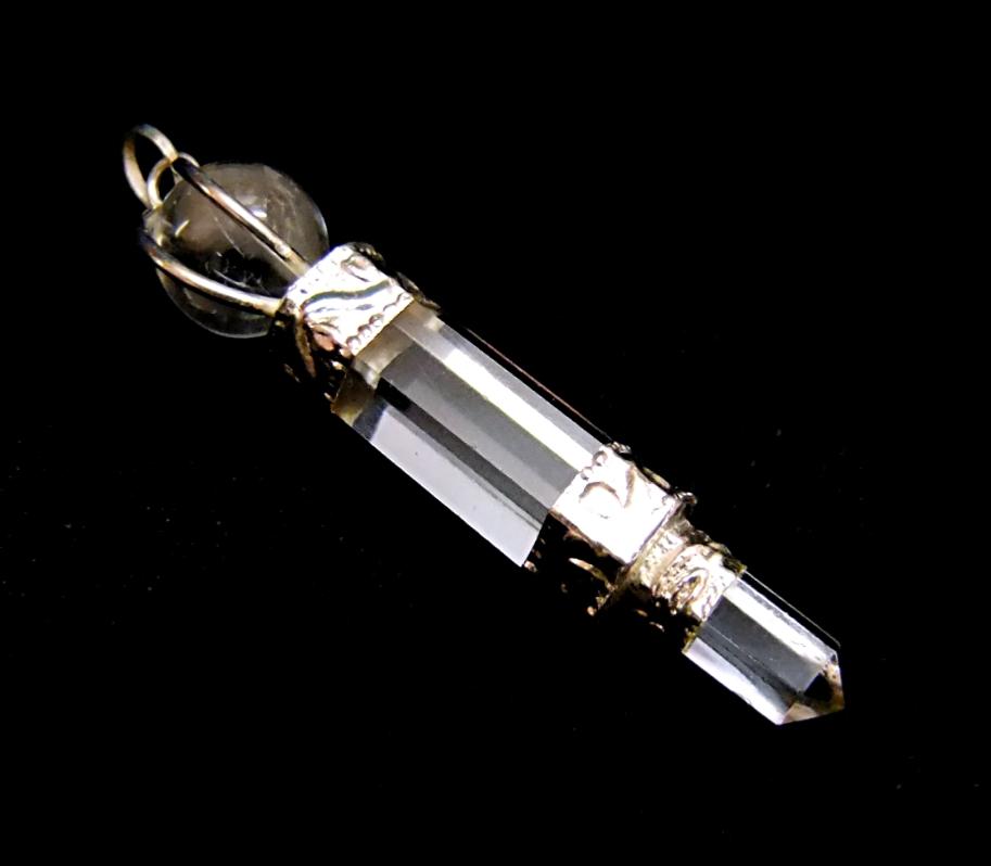 features banding in 925 silver with a quartz point &, sphere at either end. ,