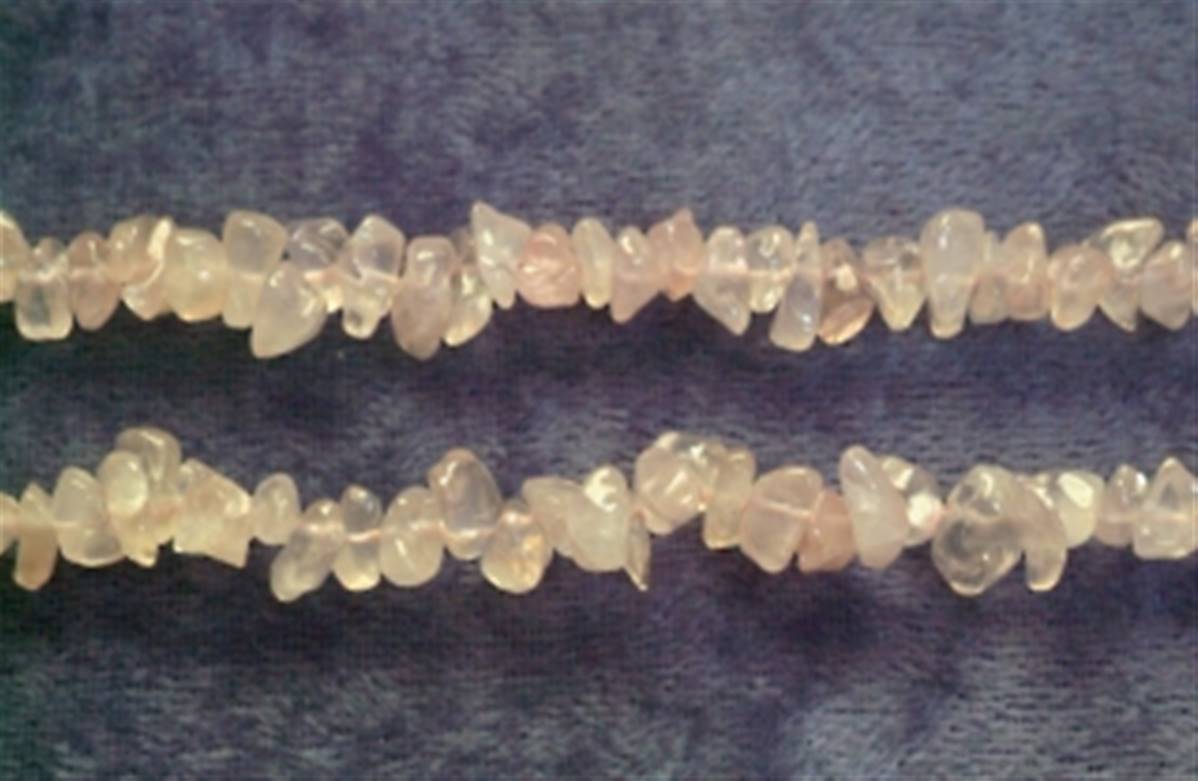 ROSE QUARTZ CHIP NECKLACE. 36″. 65g.