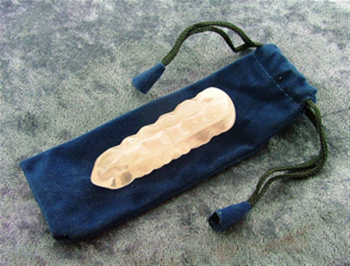 A spiral cut acu-pressure massage/ healing wand in a velvet draw string pouch.size = 6cm in length aprox.WEIGHT = 30g aprox.