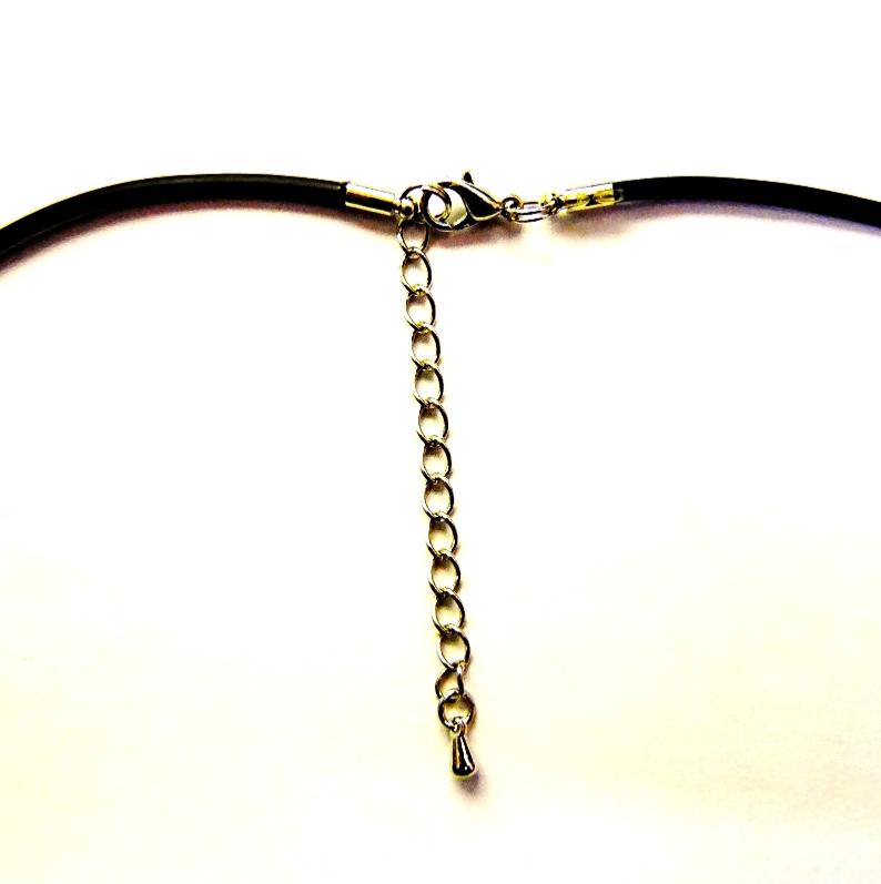 RUBBER THONG WITH SILVER PLATED CLASP &, ExTENDER CHAIN 18″.