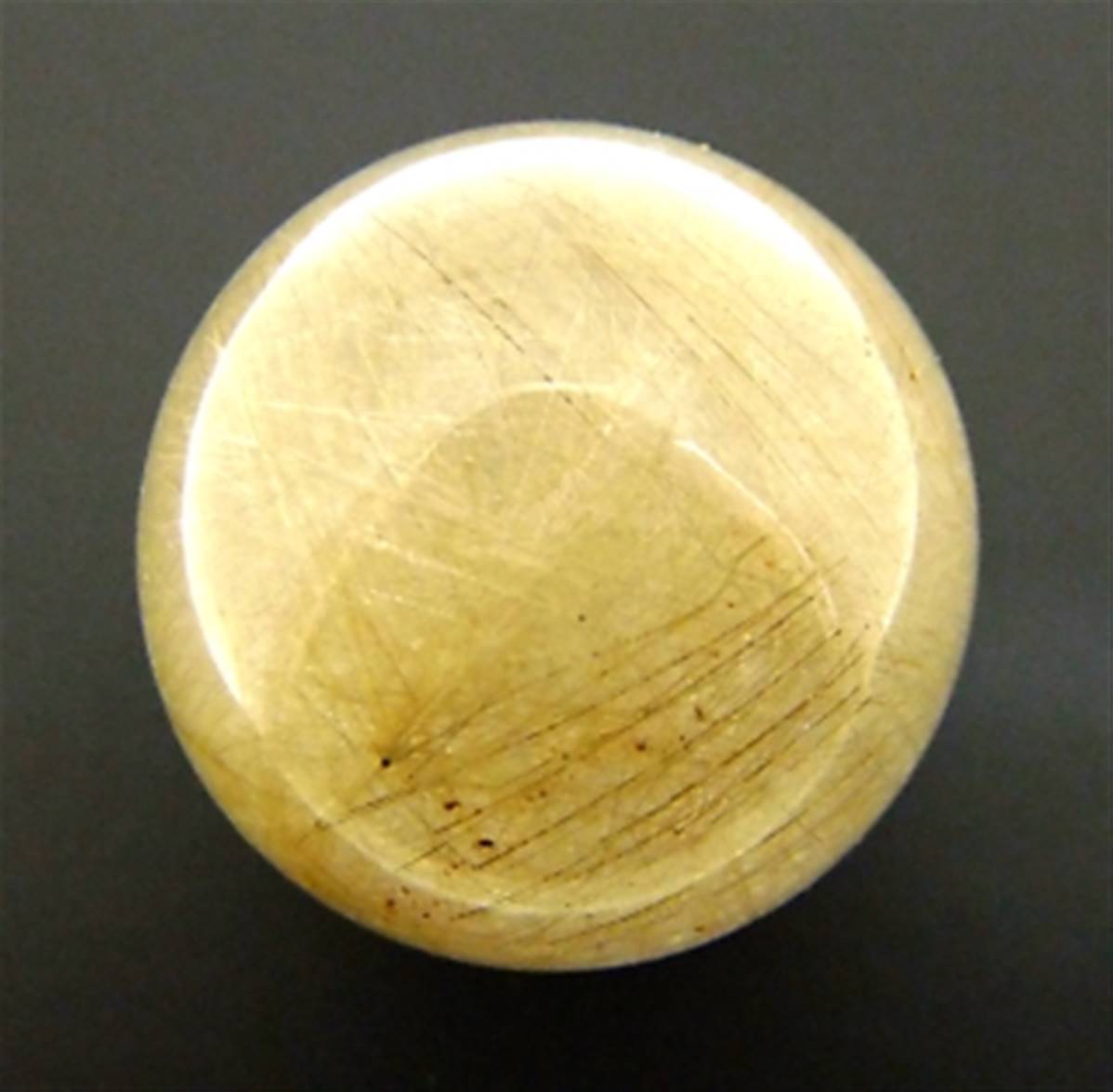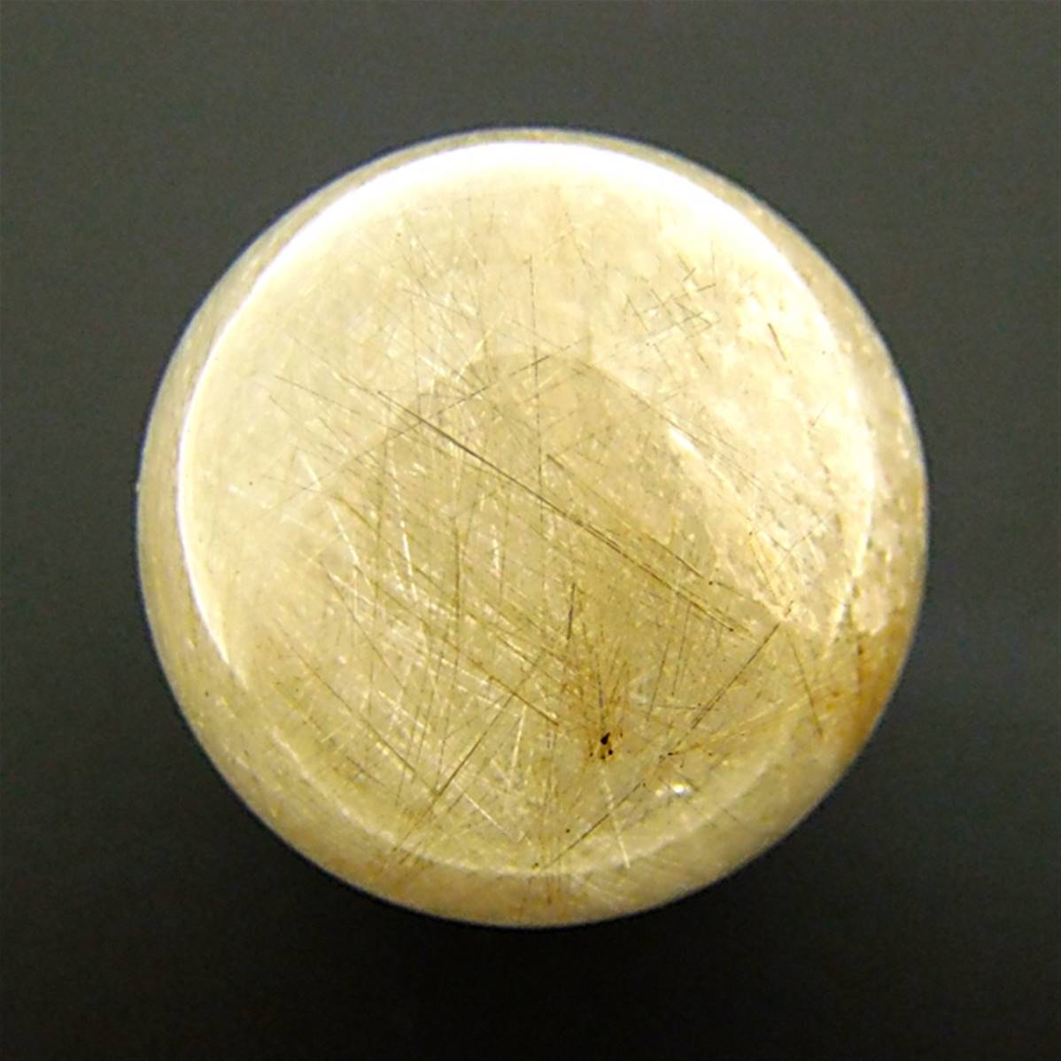 Features silver & golden rutile inclusions.size = 34mm in diameter aprox.WEIGHT = 64g.
