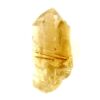 smokey quartz point specimen featuring golden rutile inclusions.