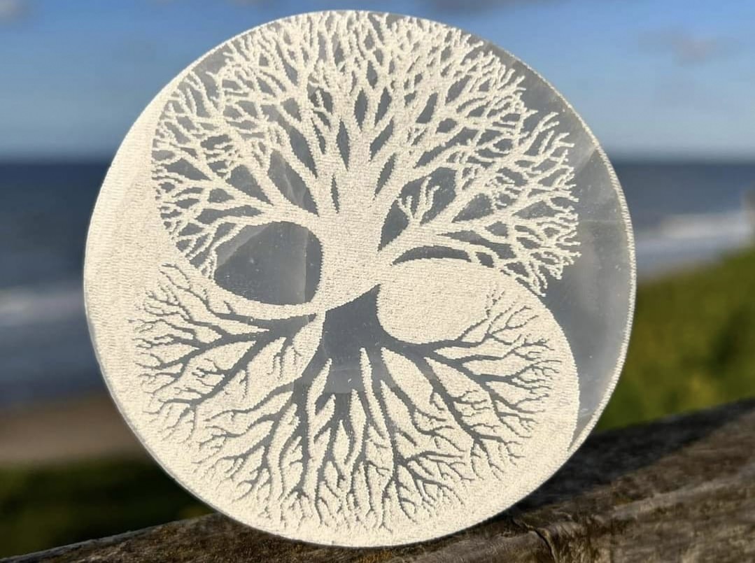 Selenite/Satin Spar Yin Yang Tree Etched Charging Plate