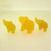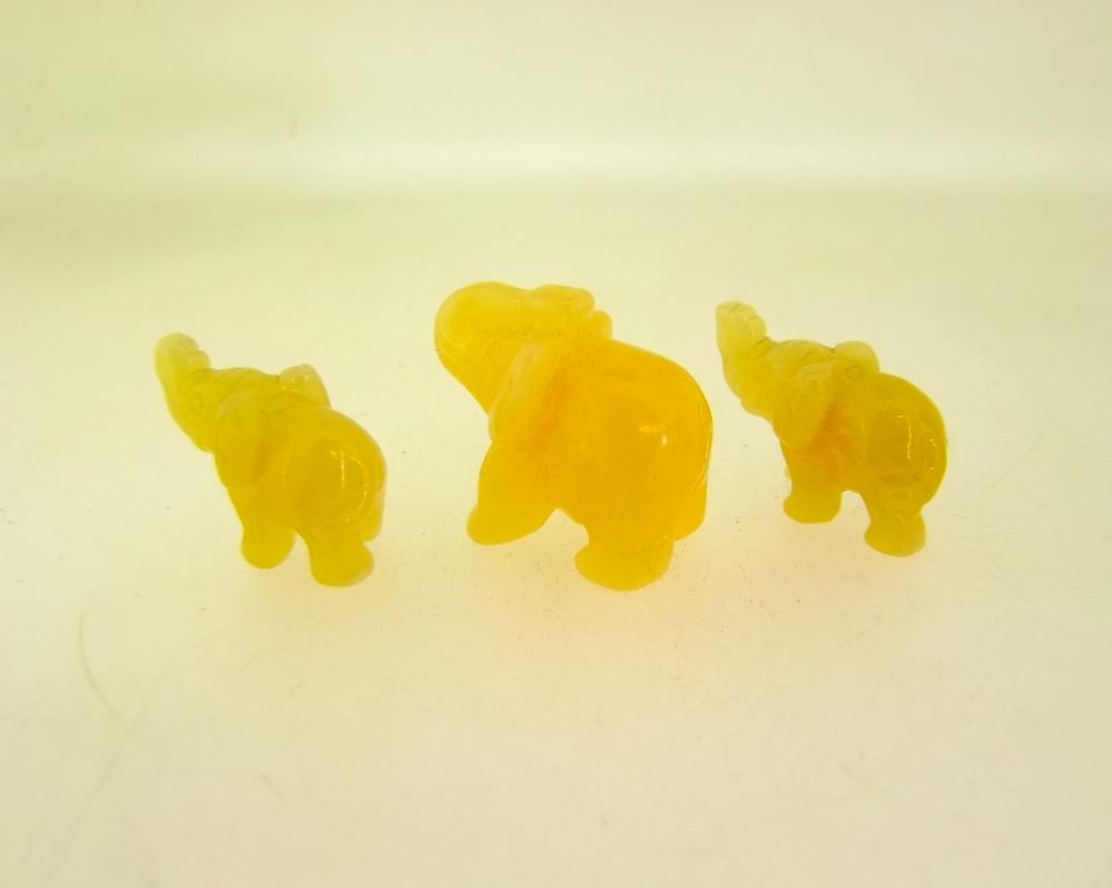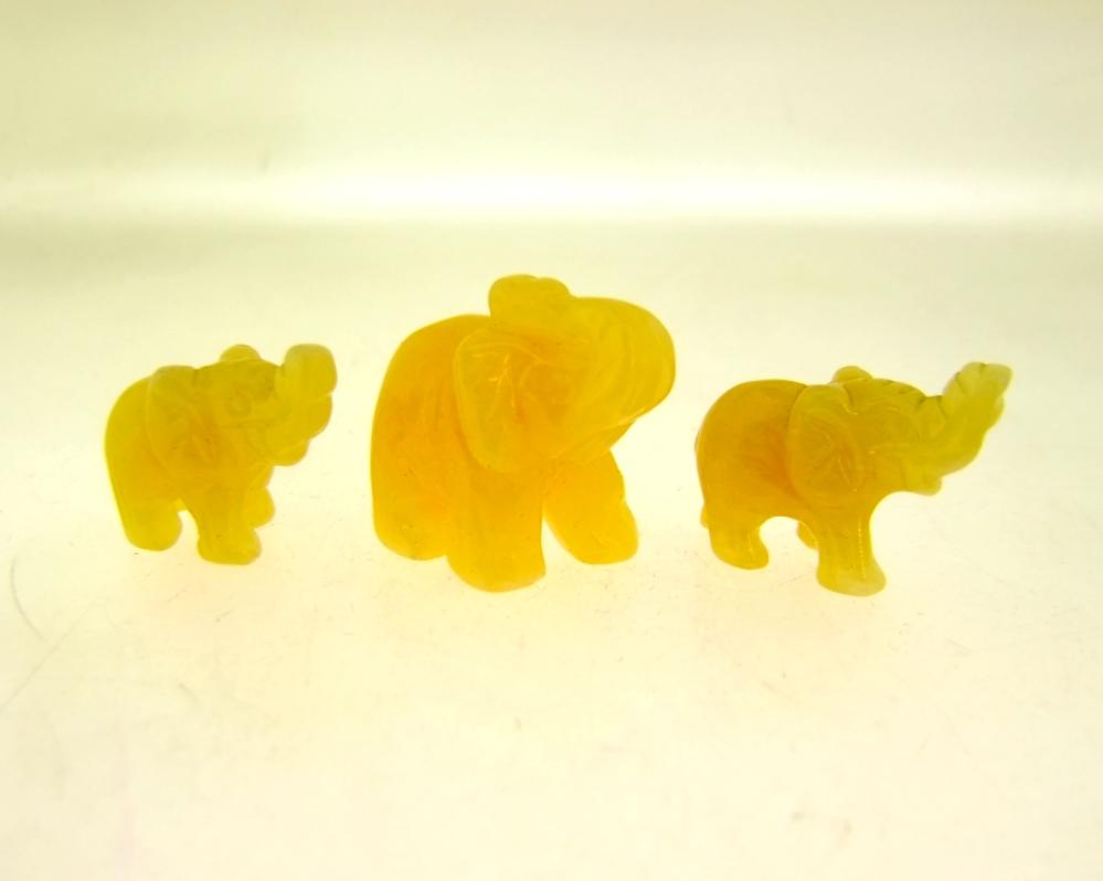 Set of three elephant carvings in orange calcite. ,