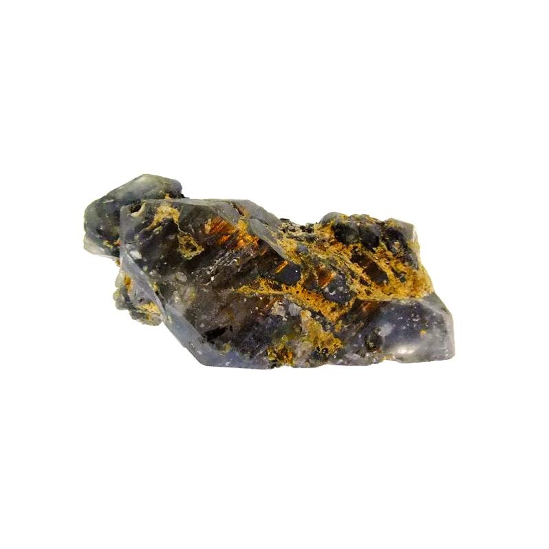 Smokey blue quartz cluster specimen featuring black tourmaline inclusions.