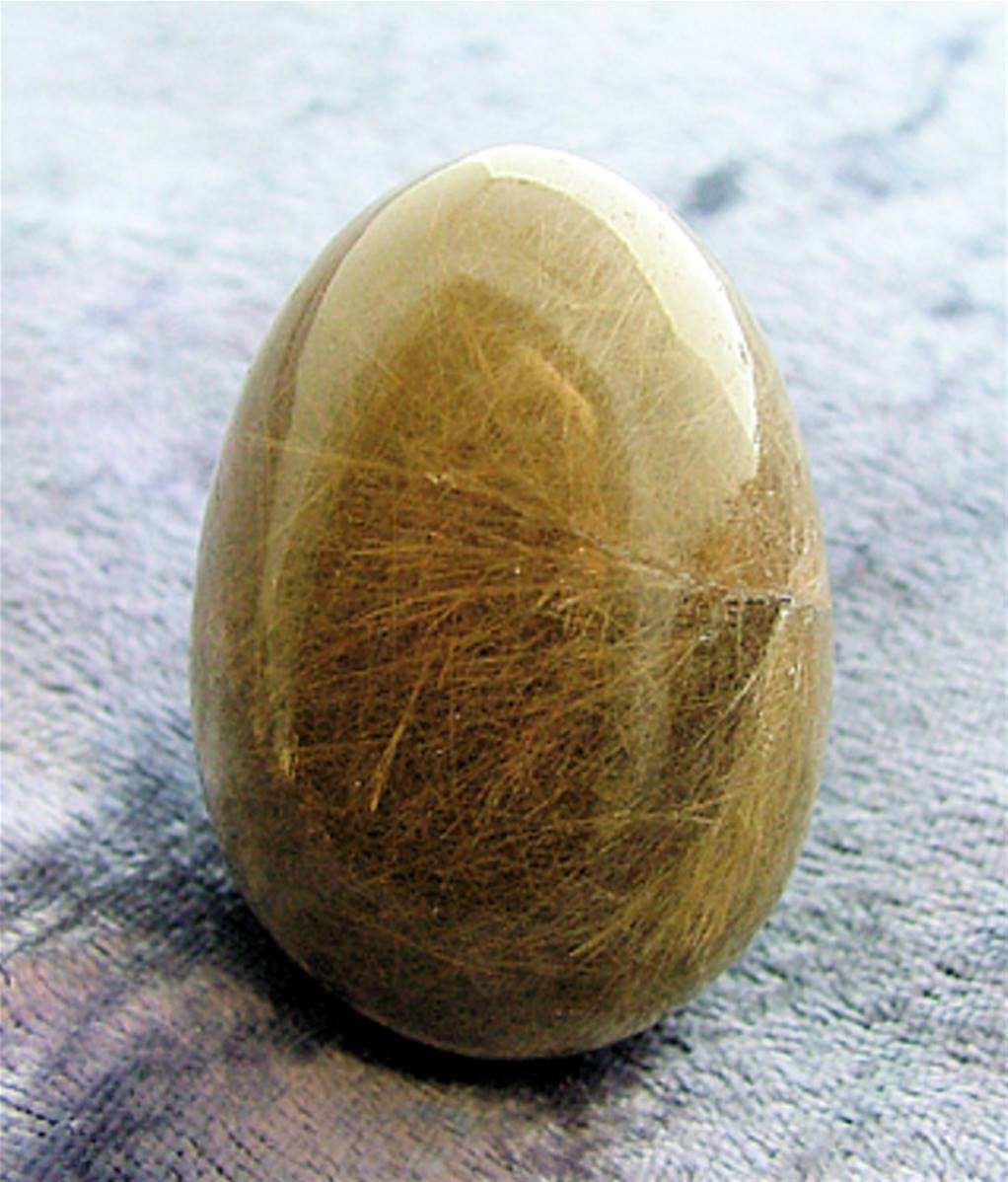 Features golden rutile inclusions.size = 42mm tall x 28mm diameter aprox.WEIGHT = 55g.