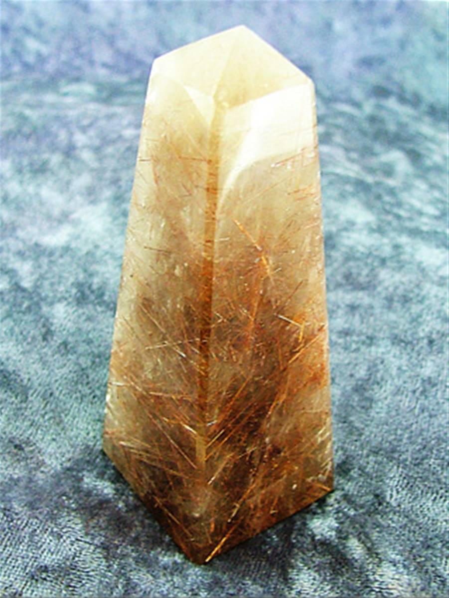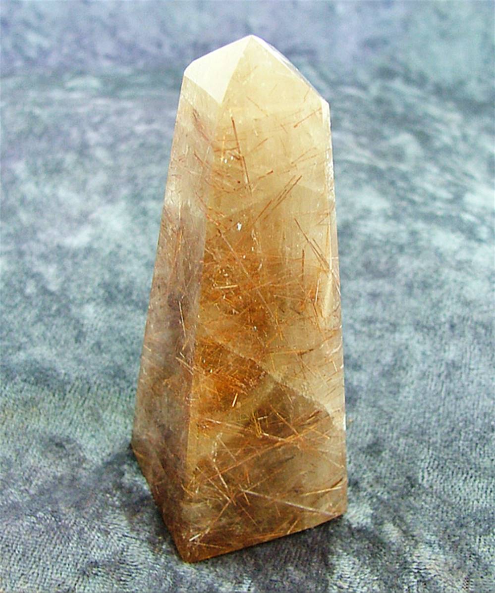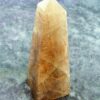 Features golden rutile injclusions.size = 87mm tall x 34mm x 34mm square at it’s base aprox.WEIGHT = 145g.