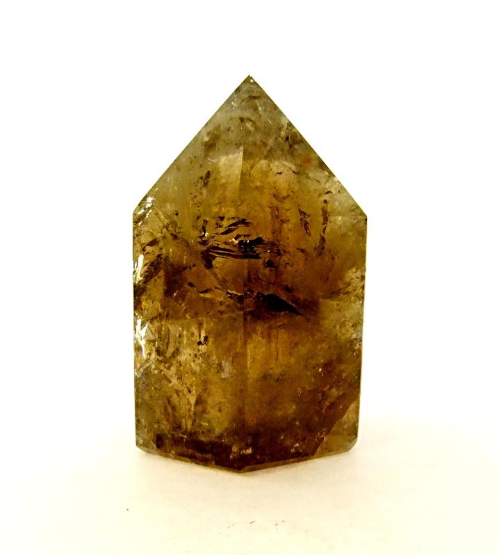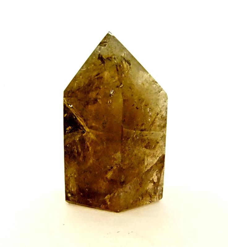 smokey quartz polished point specimen with flat cut base to stand.
