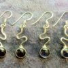 FEATURES A SINGLE ROUND CABOCHON IN IOLITE OR GARNET.SIZE = 38MM IN LENGTH INCLUDING EARWIRE APROx.SIZE OF CABOCHON = 7MM IN DIAMETER.WEIGT PER PAIR = 2g.