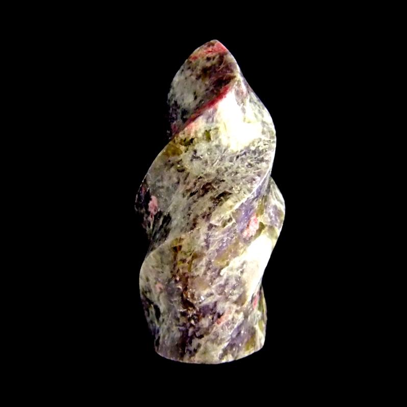 spiral flame carving in pink tourmaline with lepidolite. ,