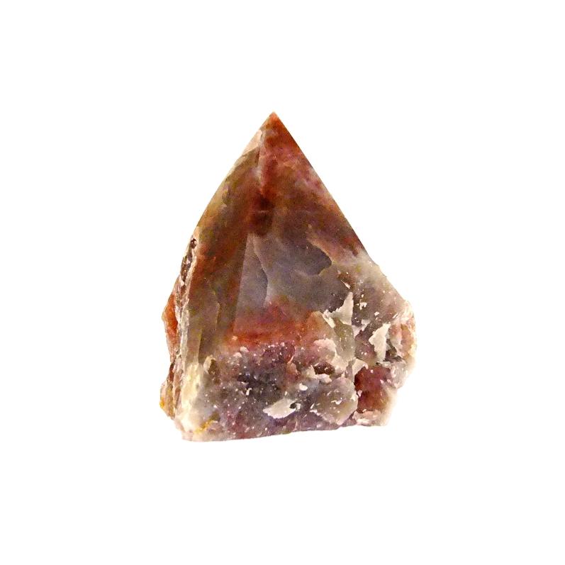 strawberry quartz top polished point specimen with flat cut base.