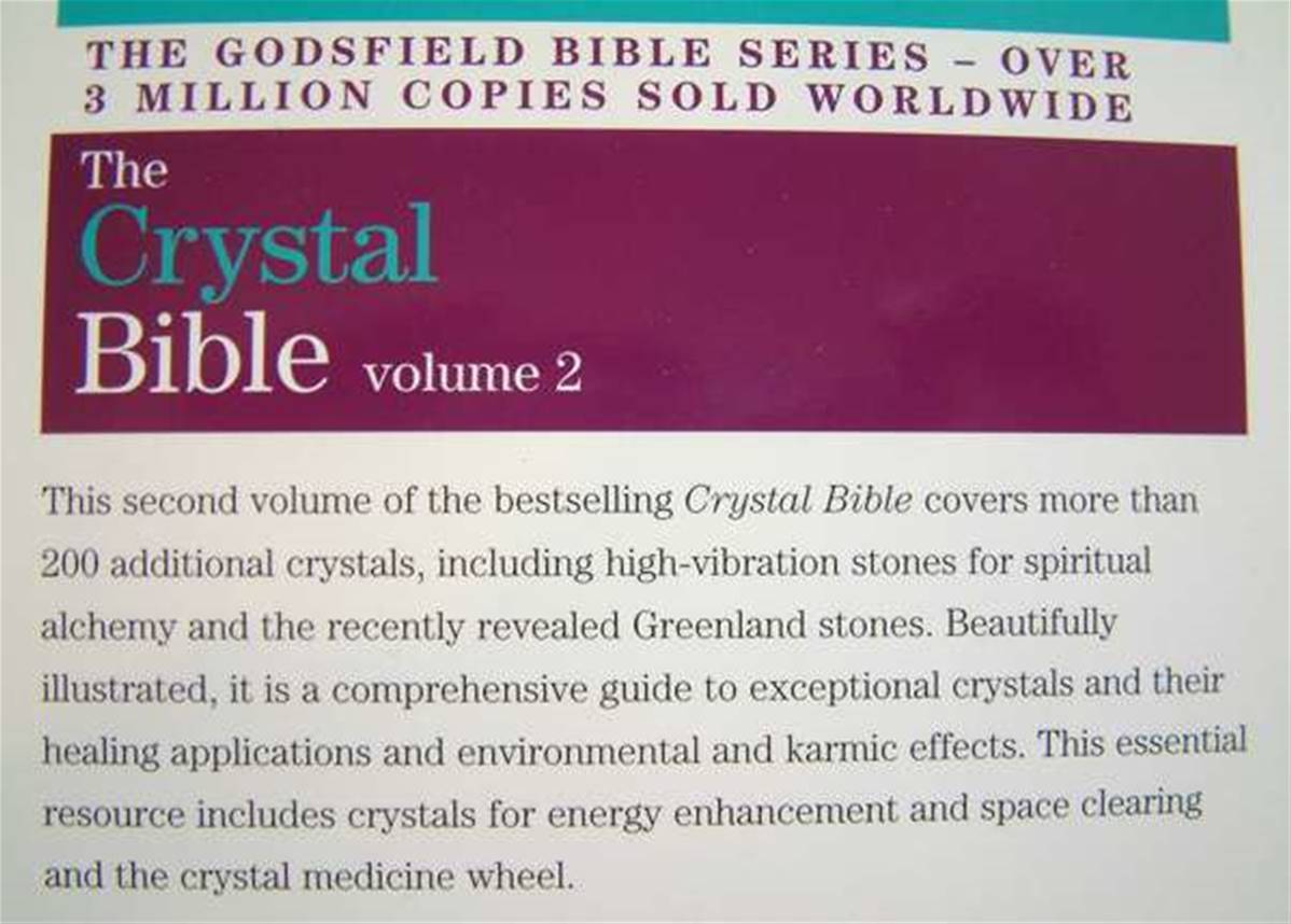 The crystal bible volume 2, by judy hall.one of our most popular books on the subject of crystal healing. It has an easy to use index and useful colour photographs of the crystals listed.packed full of colour photos and both crystal healin propoties and some geological facts toopaperback,