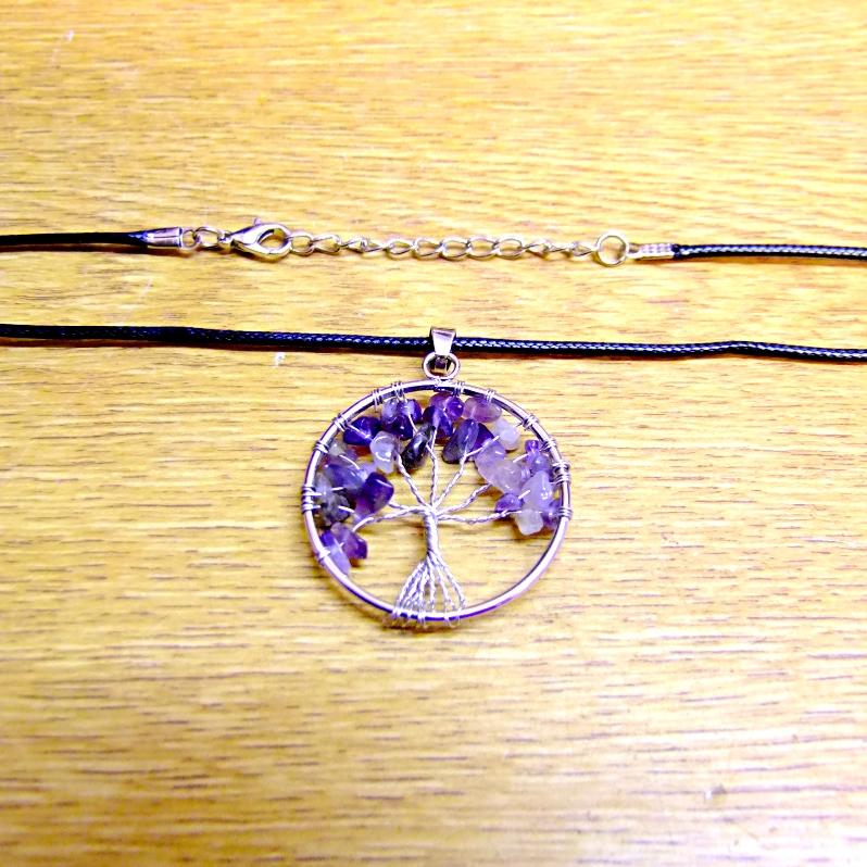 TREE OF LIFE NECKLACE WITH AMETHYST CRYSTALS (SILVER PLATED). ,