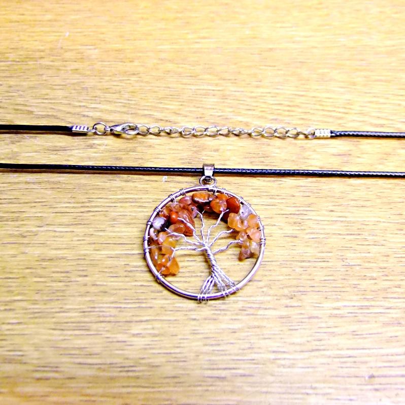 TREE OF LIFE NECKLACE WITH CARNELIAN CRYSTALS (SILVER PLATED). ,