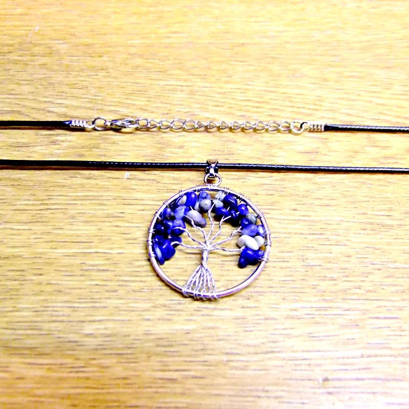 TREE OF LIFE NECKLACE WITH SODALITE CRYSTALS (SILVER PLATED). ,
